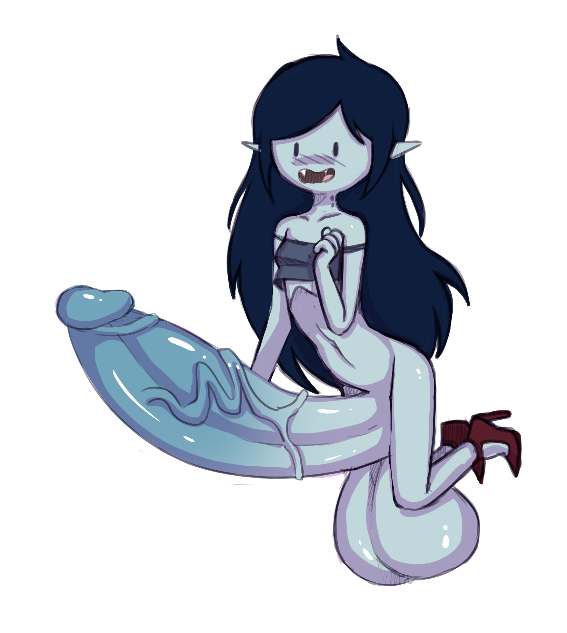 OC of Veklov, Keegan, who’s the child of Fin and Gata (you can see their conception and birth here) is getting it on with his new girlfriends. Marceline and Princess Bubblegum as a chance to one up their brothers. Competitive siblings amiright. Once Veklov and I have sorted out the colouring style I’ll post those up for everybody here!